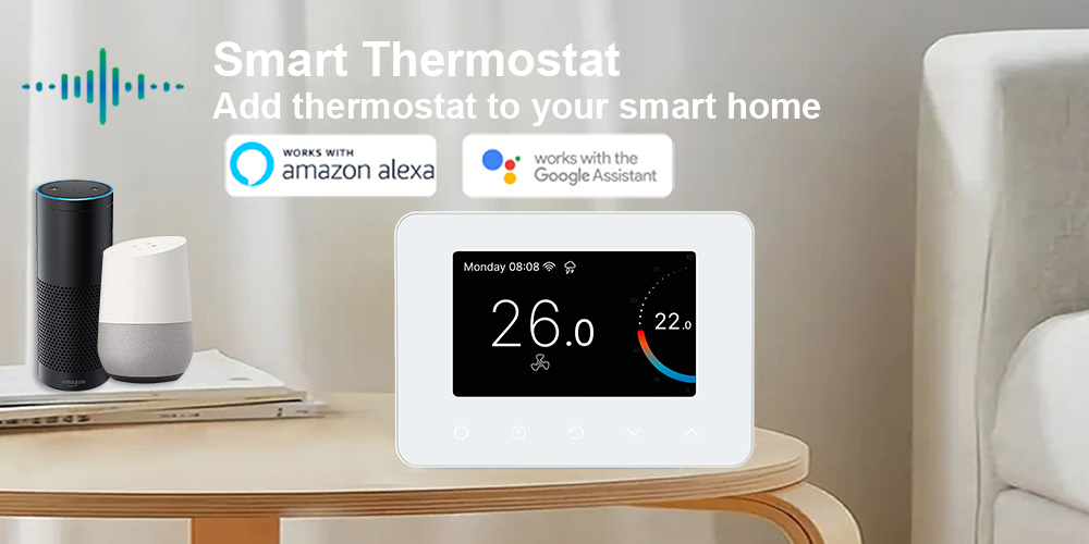 To better integrate with smart home system, this intelligent hvac thermostat also workable with tuya wifi. By connecting to home router, this programmable remote control fcu thermostat will be controlled from anytime anywhere.